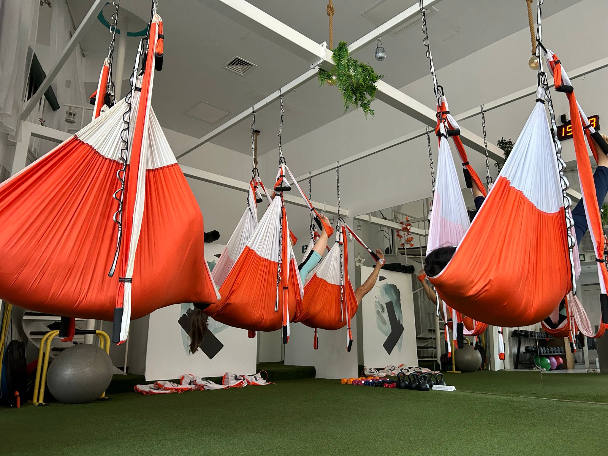 En GYM Boutique, en Sevilla, el yoga aéreo no solo es una actividad física, sino también un viaje hacia el bienestar total. Descubre cómo esta práctica única puede mejorar tu flexibilidad, fortaleza muscular y equilibrio. Además, experimenta una reducción significativa del estrés y una mejora en la concentración, todo dentro de un ambiente acogedor en el corazón de Nervión.